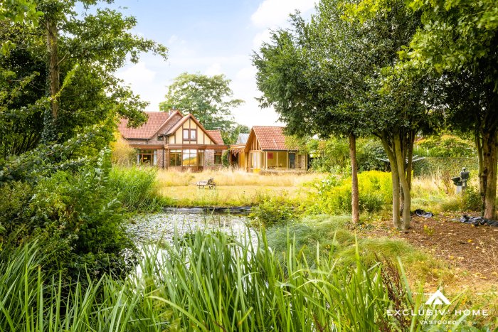 serre, vijver en een bosje gans achteraan het perceel.